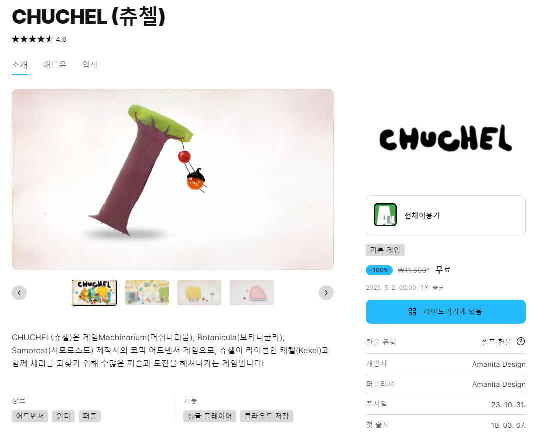 퍼즐 어드벤처 게임 츄첼을 에픽 게임즈에서 무료 배포 중입니다.